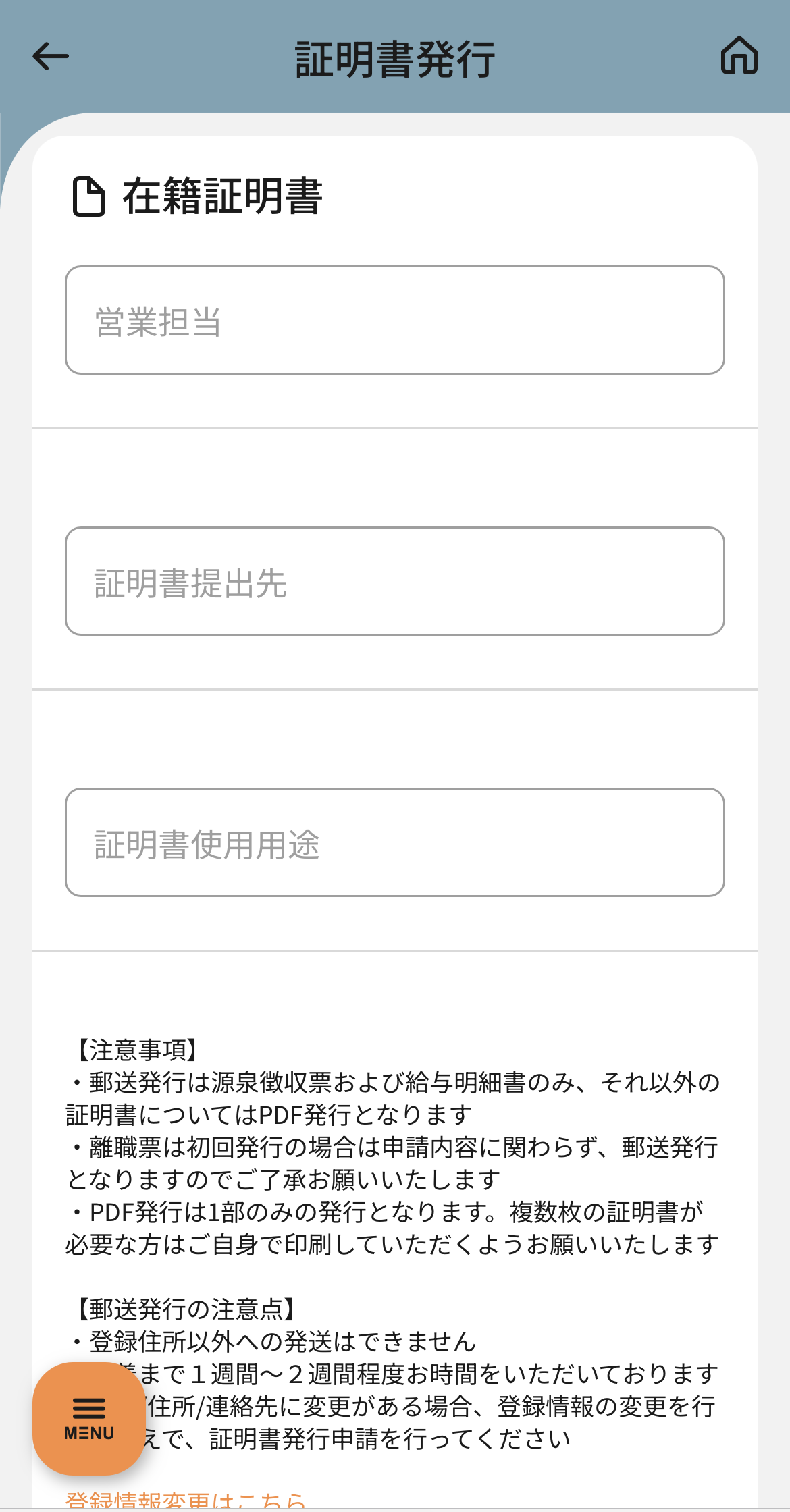 申請したい書類を選択し、必要事項を入力し、申請をして下さい。